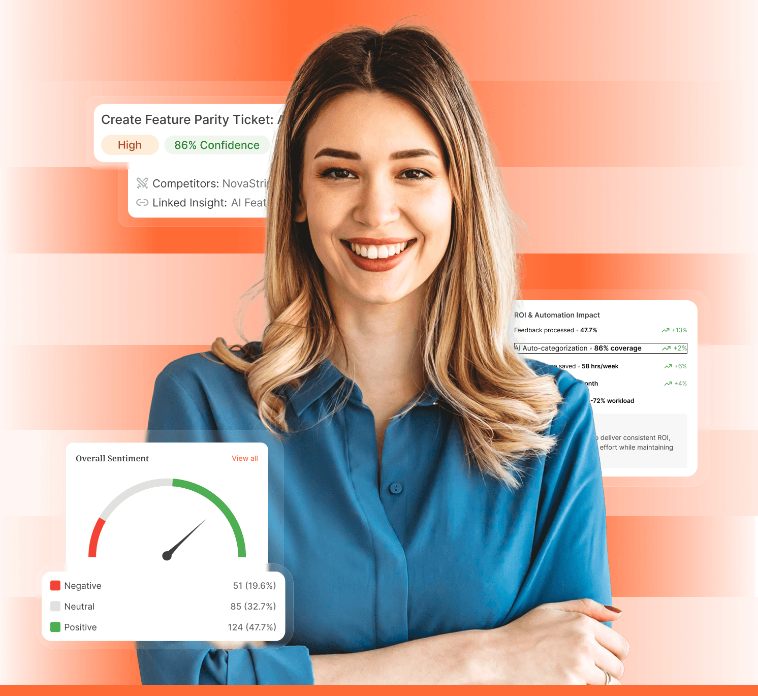 Time from customer signal to product requirement. Teams eliminate manual ticket-reading entirely.